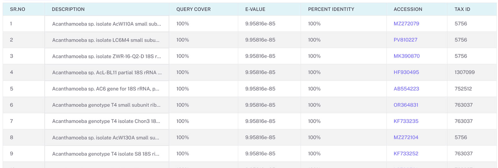- BLAST DS results are analyzed and parsed into detected and not detected accession groups, allowing quick identification and separation of accessions.