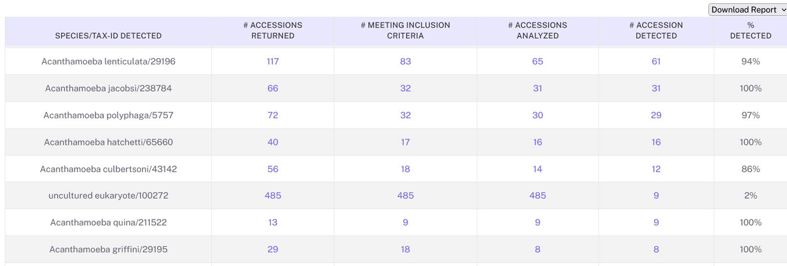 - Results are analyzed and parsed into detected and not detected accession groups, allowing quick identification and separation of accessions.